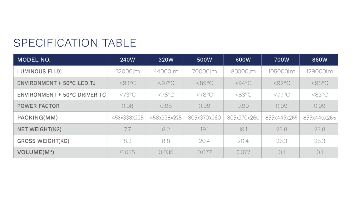 ● 适用于高杆灯、港口照明、体育场照明等场所